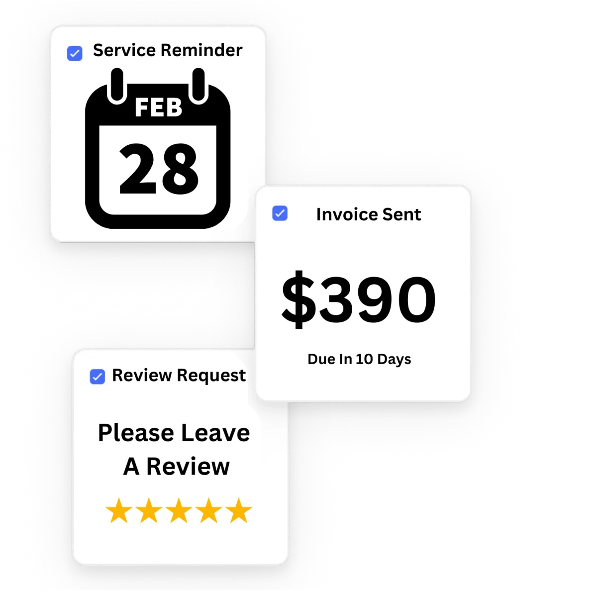 Automatically send a review request to your customers after your done servicing them.