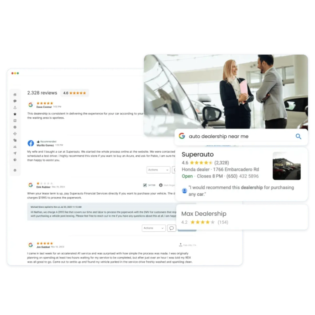 98% of customers read online reviews before buying a product. An online review management platform helps you build credibility with potential customers using reviews. It also boosts your SEO and helps you attract more customers on Google.